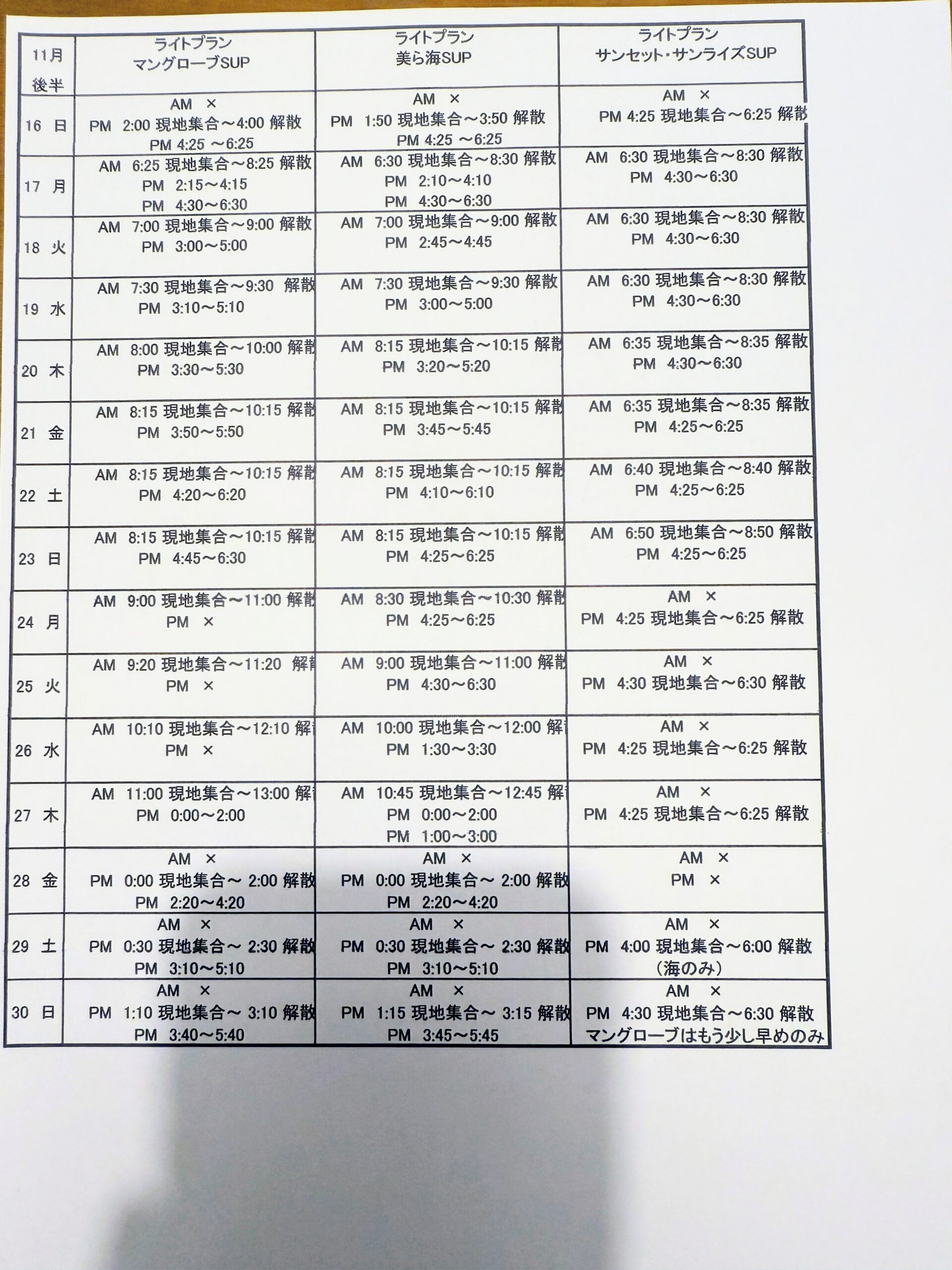最もお問い合わせの多いSUPの開催時間について順々にタイムスケジュールをアップさせて頂きますね。